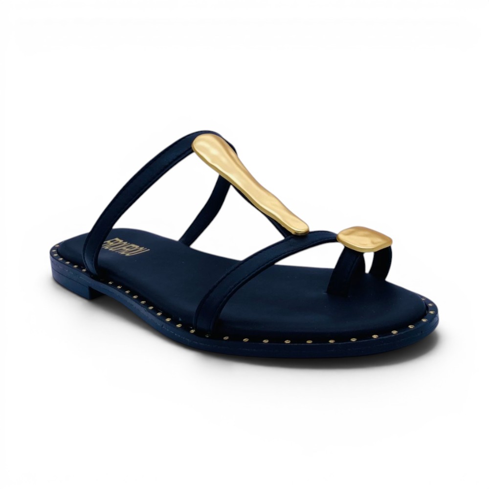 Πέδιλα φλατ δερμάτινα με διακοσμητικά μεταλλικά στοιχεία. Ελληνικής κατασκευής με αντικραδασμικό υλικό στο πάτημα για άνετο βάδισμα.