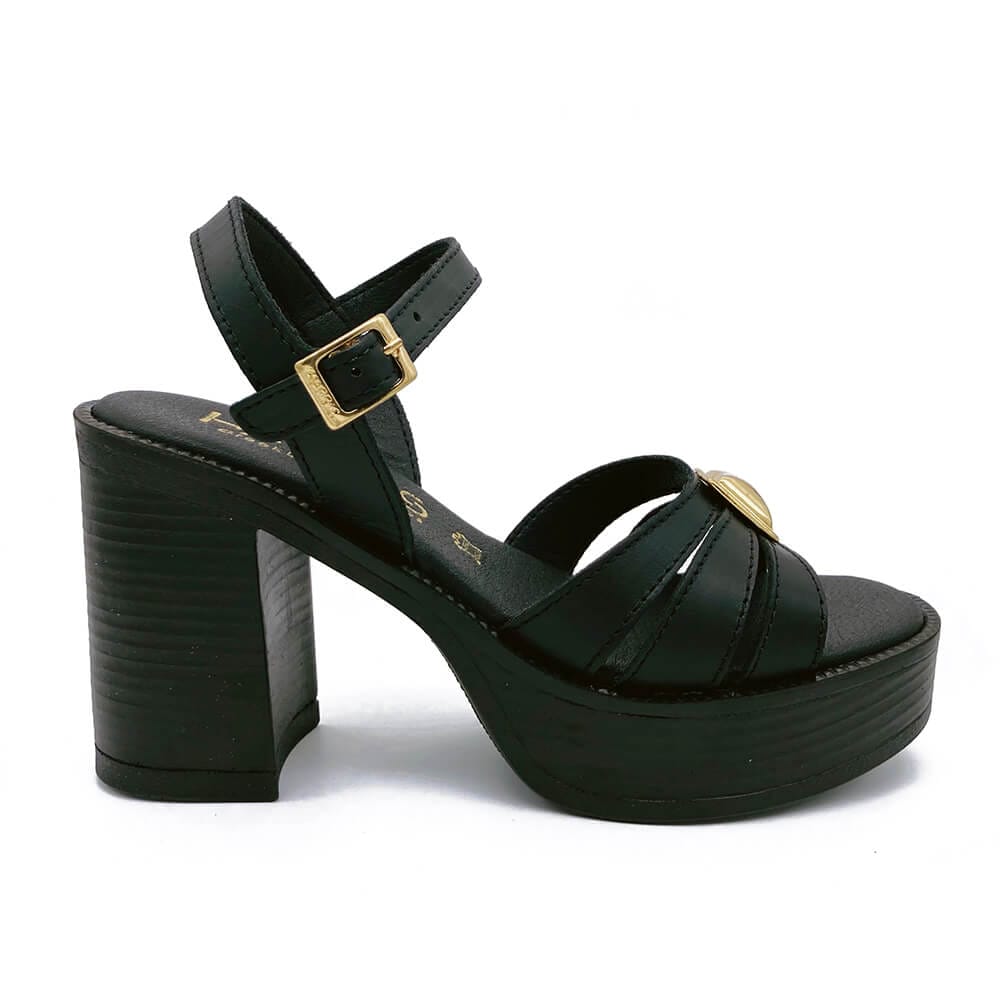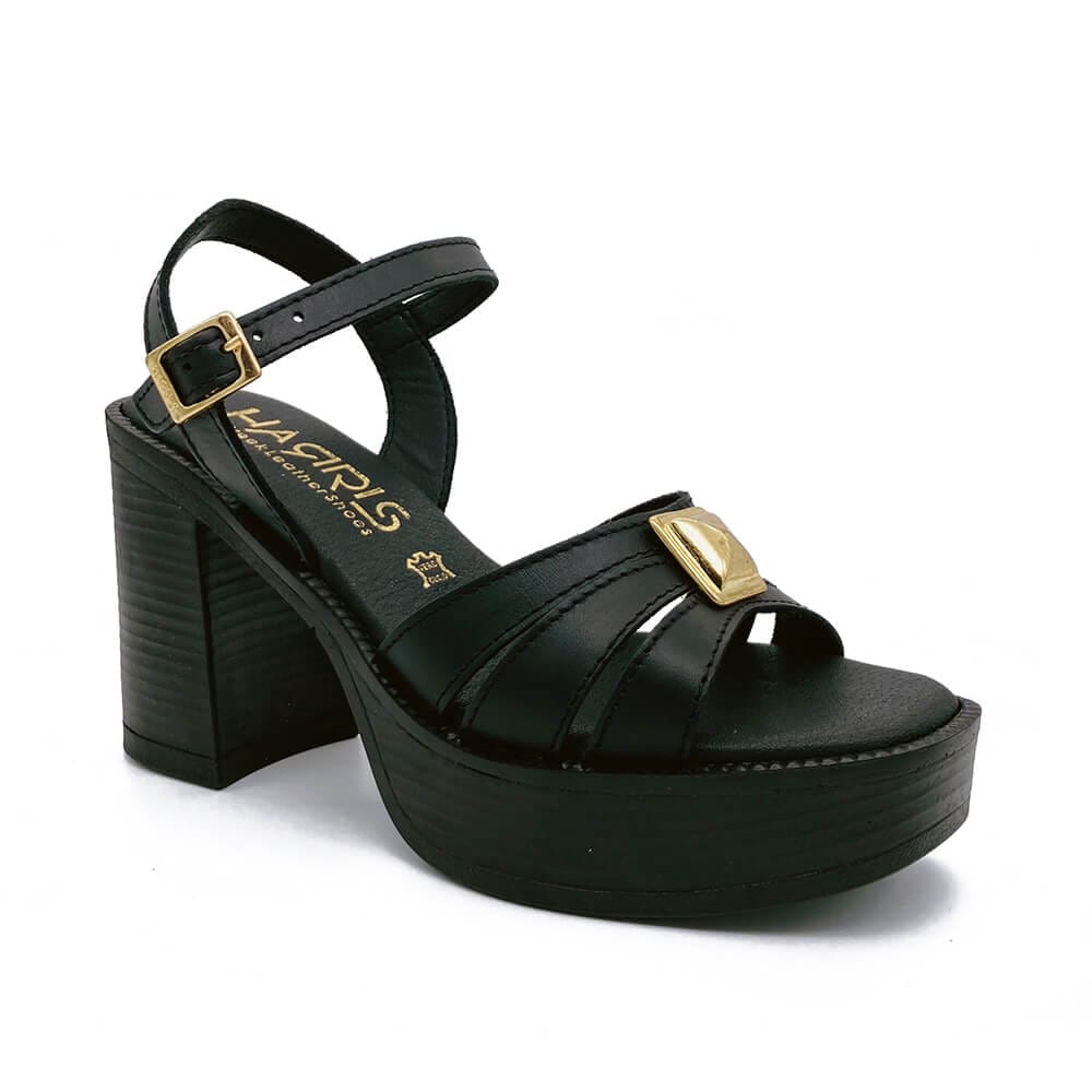 Πέδιλα δερμάτινα με φαρδύ τακούνι και φιάπα, Ελληνικής κατασκευής με αντικραδασμικό υλικό στο πάτημα και σόλα από λάστιχο για άνετο βάδισμα.
