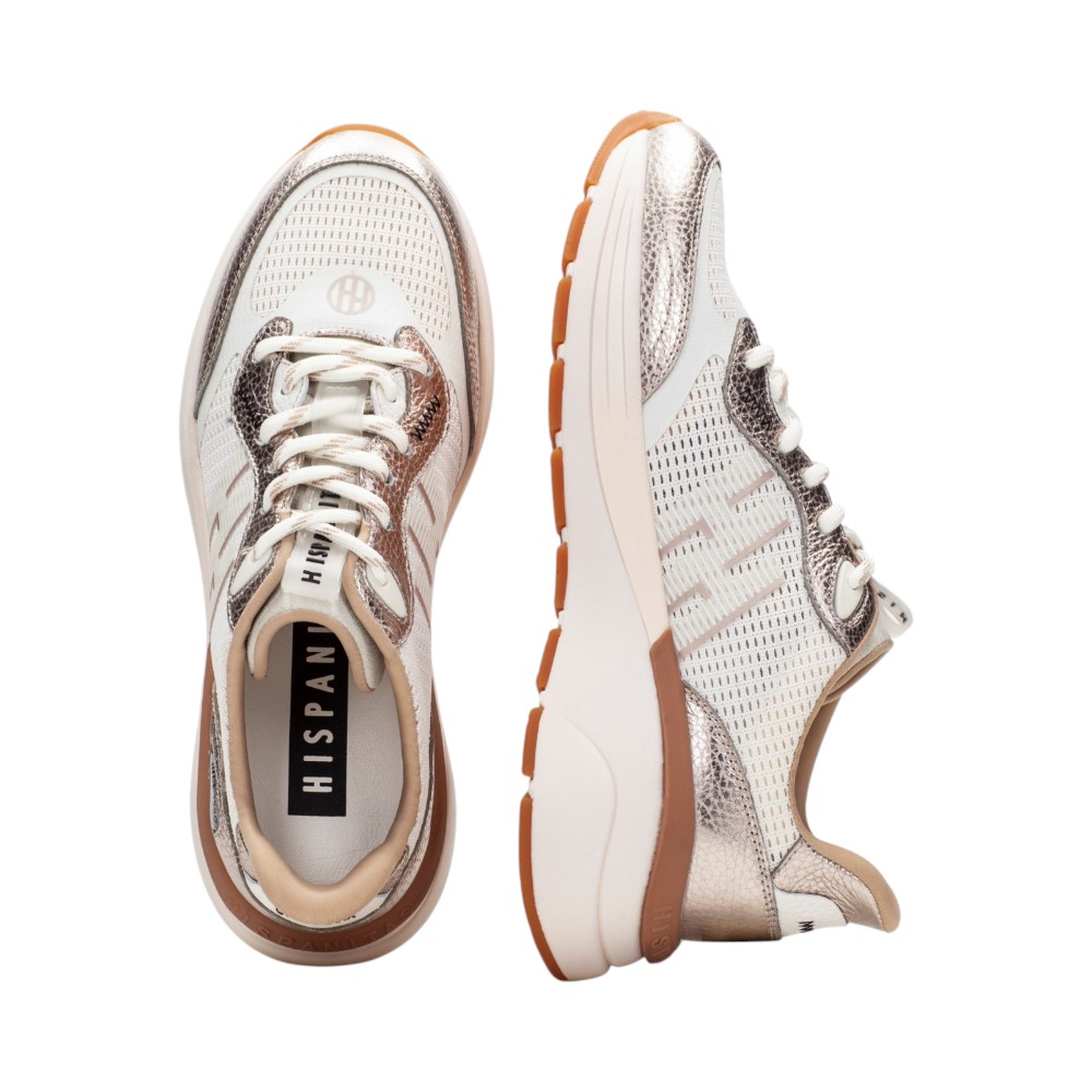 Sneakers HISPANITAS από δέρμα και διαπνέον ύφασμα με κορδόνια. Διαθέτουν σόλα ύψους (5cm) και αποσπώμενο εσωτερικό πάτο που σε συνδυασμό με τον εσωτερικό πάτο τριπλής επίστρωσης (TRIFLOW) συνθέτουν το GELSYSTEM που χαρίζει άνετο βάδισμα όλες τις ώρες της ημέρας.